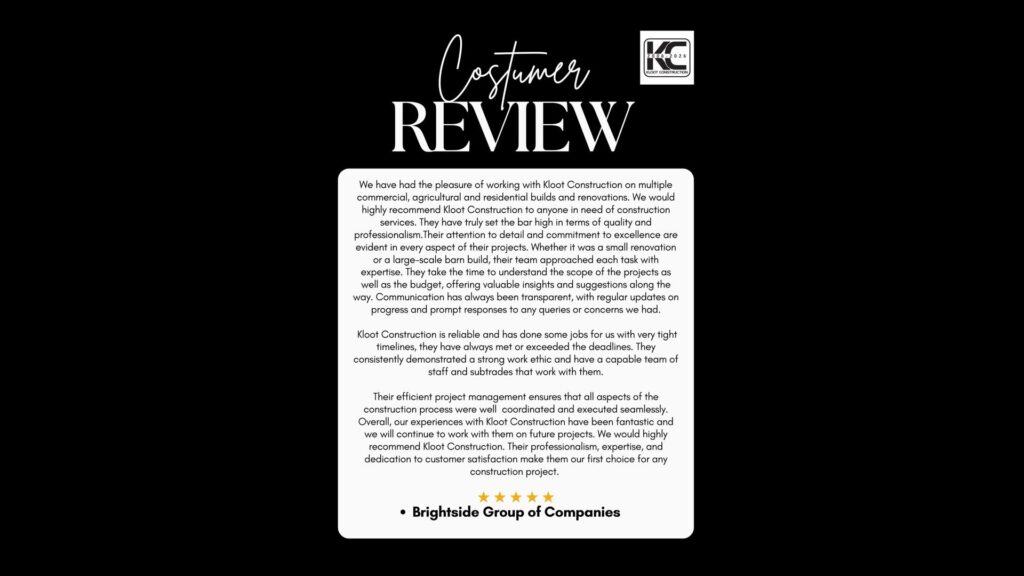 At Kloot Construction, we understand the needs of agricultural businesses, farm markets, and rural entrepreneurs, providing reliable commercial construction services for farm buildings, markets, and small business facilities throughout British Columbia.