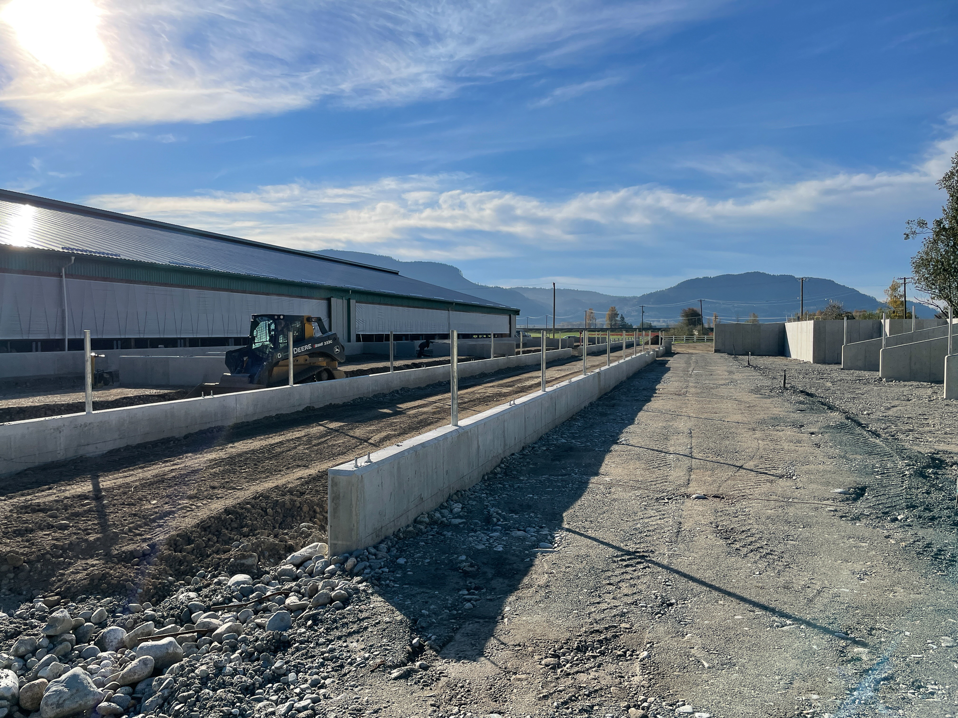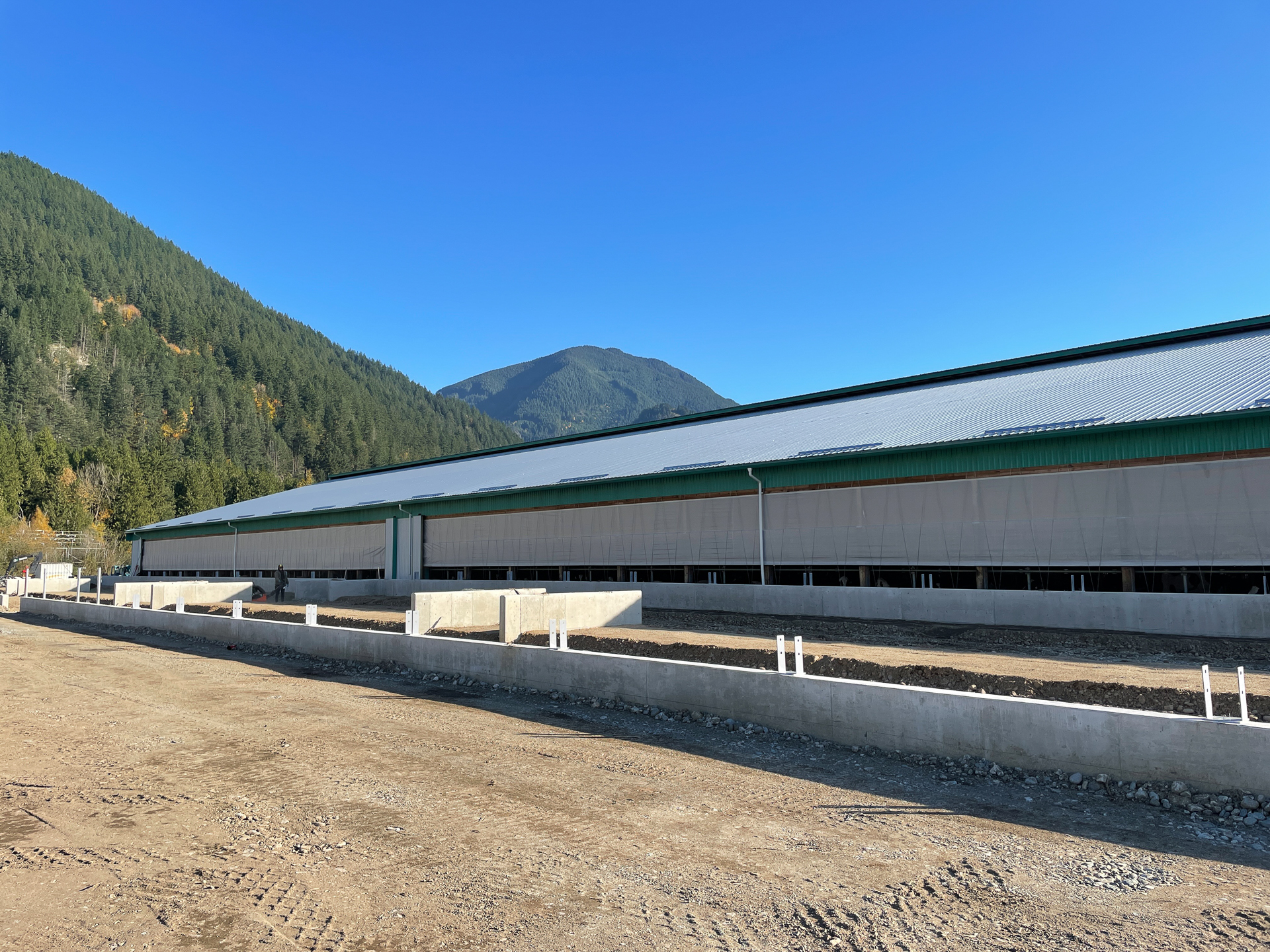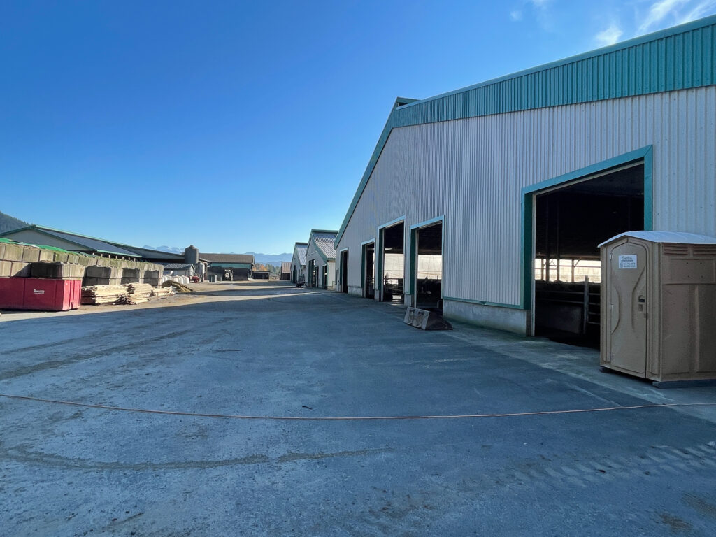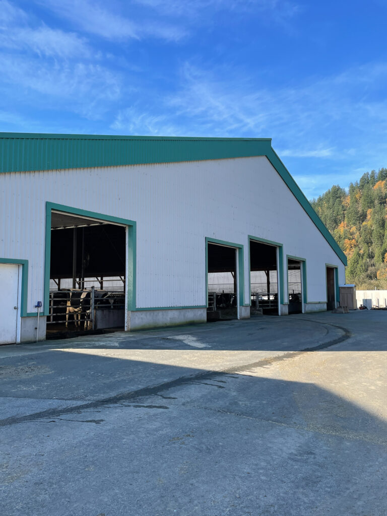From a capability standpoint, the barns use open sidewalls with curtain systems and ridge ventilation to maximize natural airflow and cow comfort. Wide door openings and straight-through alleys support smooth animal movement and equipment access. Exterior concrete bunkers and lanes are designed for high-volume feed handling and manure management, keeping operations clean, predictable, and scalable. This is a production-focused dairy build: simple, tough, and designed to move cows and feed without bottlenecks.