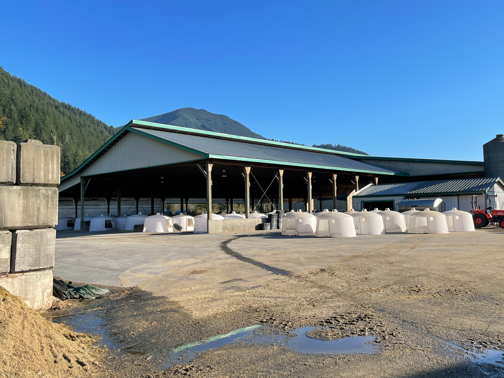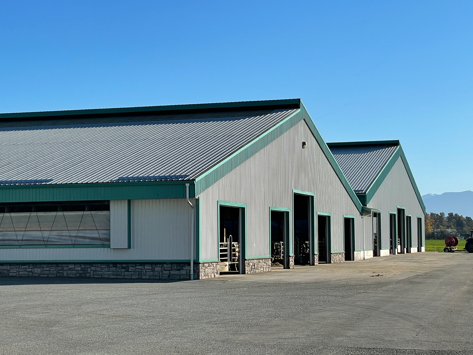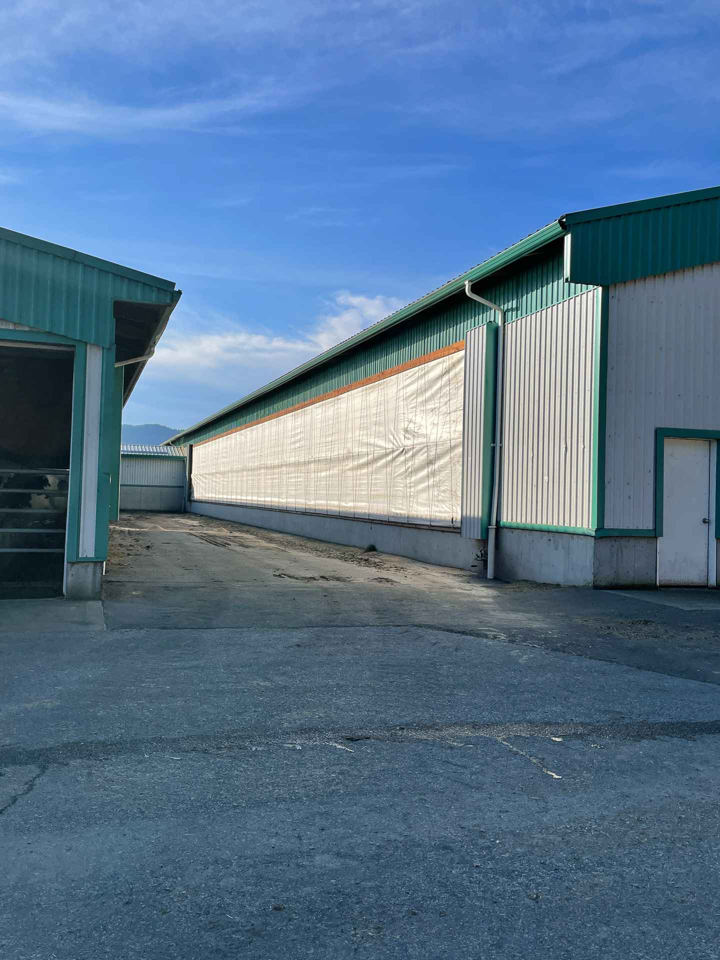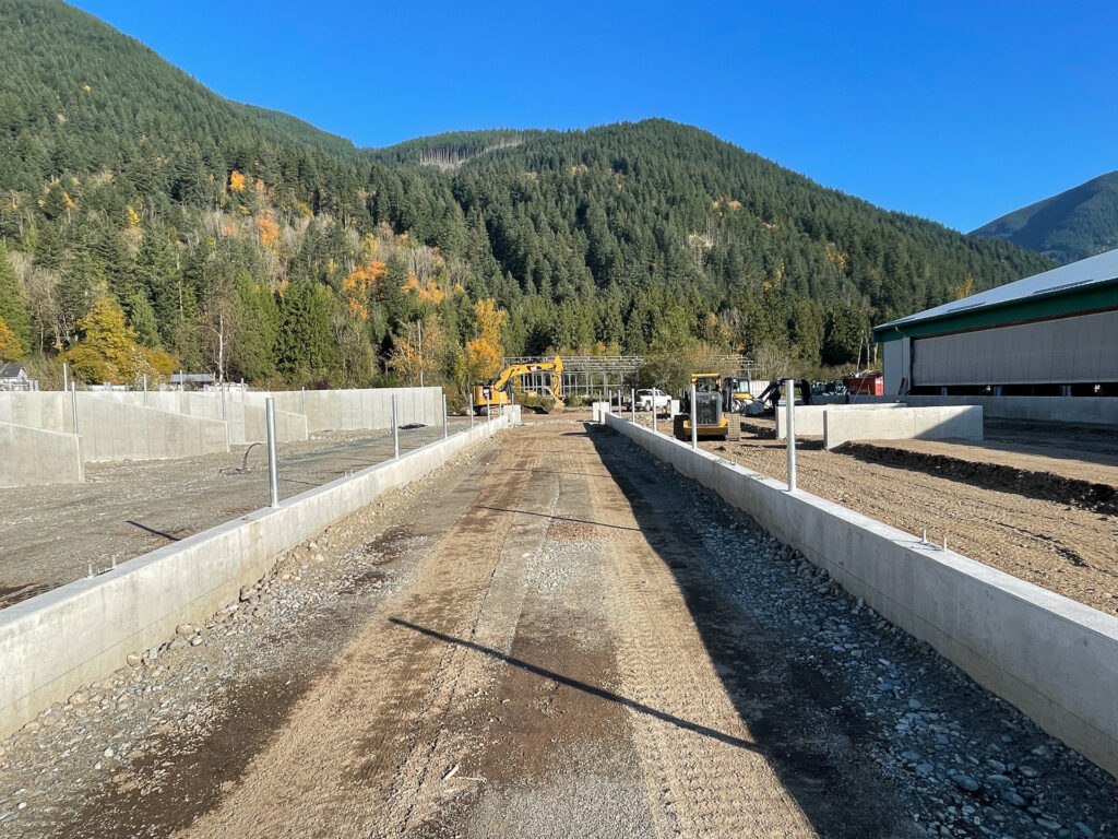 From a capability standpoint, the barns use open sidewalls with curtain systems and ridge ventilation to maximize natural airflow and cow comfort. Wide door openings and straight-through alleys support smooth animal movement and equipment access. Exterior concrete bunkers and lanes are designed for high-volume feed handling and manure management, keeping operations clean, predictable, and scalable. This is a production-focused dairy build: simple, tough, and designed to move cows and feed without bottlenecks.